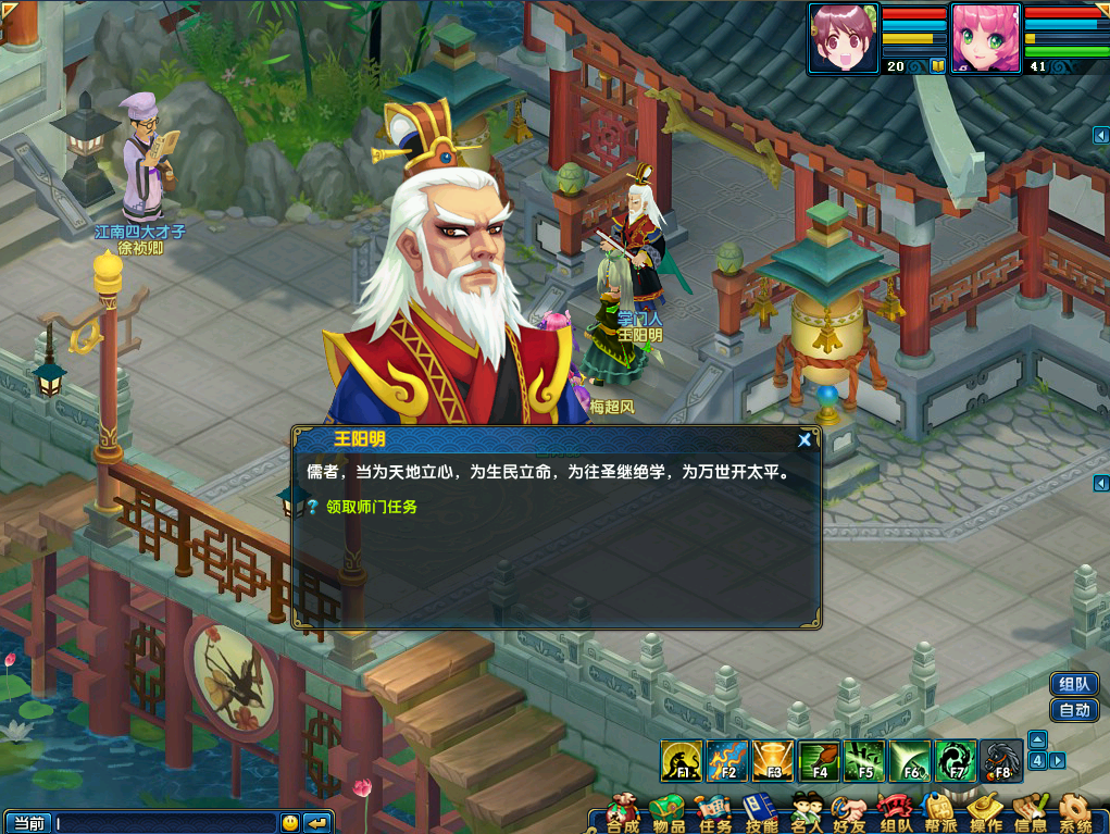 加入门派且等级达到25后,去看看师傅有什么嘱托的任务,完成师傅嘱托的任务后可以获得大量的经验和银票,这是每天最重要的升级方式之一,每天前20环师门任务还有4倍奖励加成,强烈推荐每天都完成前20环任务。