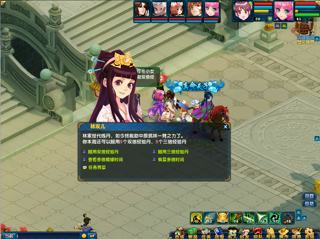 25级后可以到汴京林双儿领取双倍或三被经验银票buff,领取多倍buf后参与辑凶、野外刷怪、江洋大盗、惊天巨贼活动有多倍经验银票效果,如果在本周没有时间这些多倍buff,那么下周会自动累计成多倍精修buff哦。