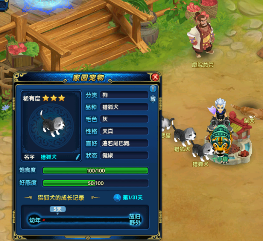 想拥有性格多变,帅气与呆萌兼具的哈士奇吗?想领养表情友善,个性热情机自信的金毛吗?或是想要养只性格刚烈好动,机智灵活的暹罗猫吗?盖世豪侠百宠降世,各类萌物应有尽有,模拟人生,打造真人养宠玩法,让各类宠物成为您江湖最贴心的伙伴。各位玩家只需通过庭院领养员处购买或者配对获得宠物窝,拥有宠物窝便可召唤可爱的小宠物咯!若玩家对宠物的要求稍高,每日凌晨还有几率出现流浪稀有宠物等你抱回家噢!寻宠之旅正式启程,还在犹豫什么,赶紧去领养一只心仪的家园宠物吧!