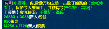 现在奖励不再完全随机拼RP。击杀普通金帐奖励和以前一样;击杀疯狂金帐侍卫有可能获得高价值的高级龙凤典、四级乌金,并且有概率可以获得碎玉和青玉来兑换名人宝物 。 不过各位一定要小心疯狂金帐哦,难度也会很高哦,一定要组给力的队友去击杀哦。