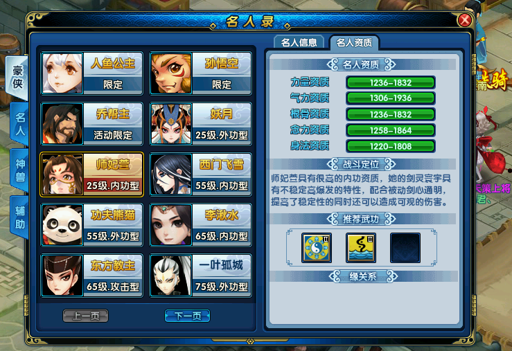新名人大家除了关心技能,还会关系师宣妃的数值资质,马上来看一下吧。