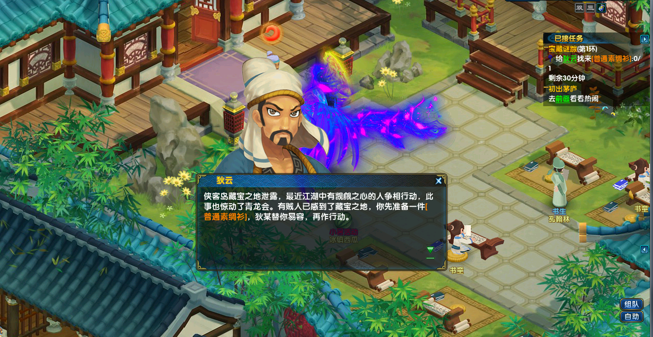 传闻侠义岛几十年以来积聚了一大批财富藏于《盖世豪侠》江湖之中的某个隐秘之地,以作为抵抗青龙会之所用,但近几年来藏宝之地流传于世,青龙会与江湖上有觊觎之心的武林人士纷纷争相前往藏宝之地,意欲盗取宝藏,≥40级的小伙伴们可到汴京(155,192)npc狄云进行”宝藏迷踪”完成一系列宝图任务来抢先夺得宝物哦~任务一开始狄云会先让你乔装打扮成盗贼模样以便混入发现了宝藏之地的同伙中,而后便会得知盗宝贼在探索途中发现了一个可能是藏宝之地的秘境,怎料在探索秘境途中被盗宝贼识破真身,展开了一场厮杀,击败盗宝贼并汇报情况给狄云即可获得一张藏宝图哦。