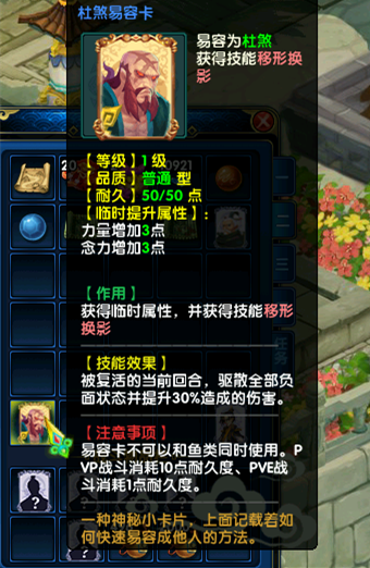 易容卡效果:携带“移形换影”技能。