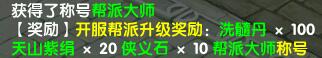 帮派争先:新服开服30天内,到达 3,4,5,6,7,8级的帮派,发放给达标成员礼包奖励