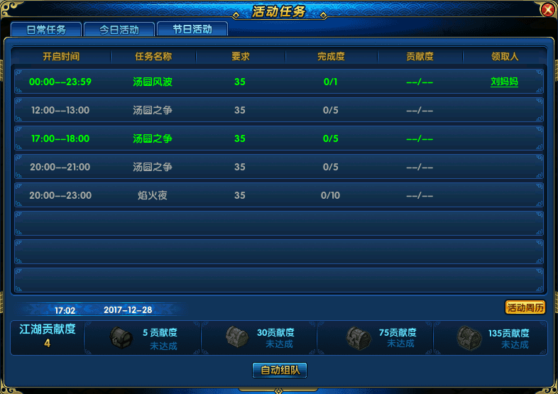 时间:2017年12月28日~2018年01月05日20:00~23:00