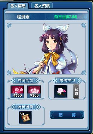 这次推出的五星名人——程灵素,是外功型名人,两个超强力的被动技能和不错的资质,让它能在众多外功型名人里面也能有一席之地。